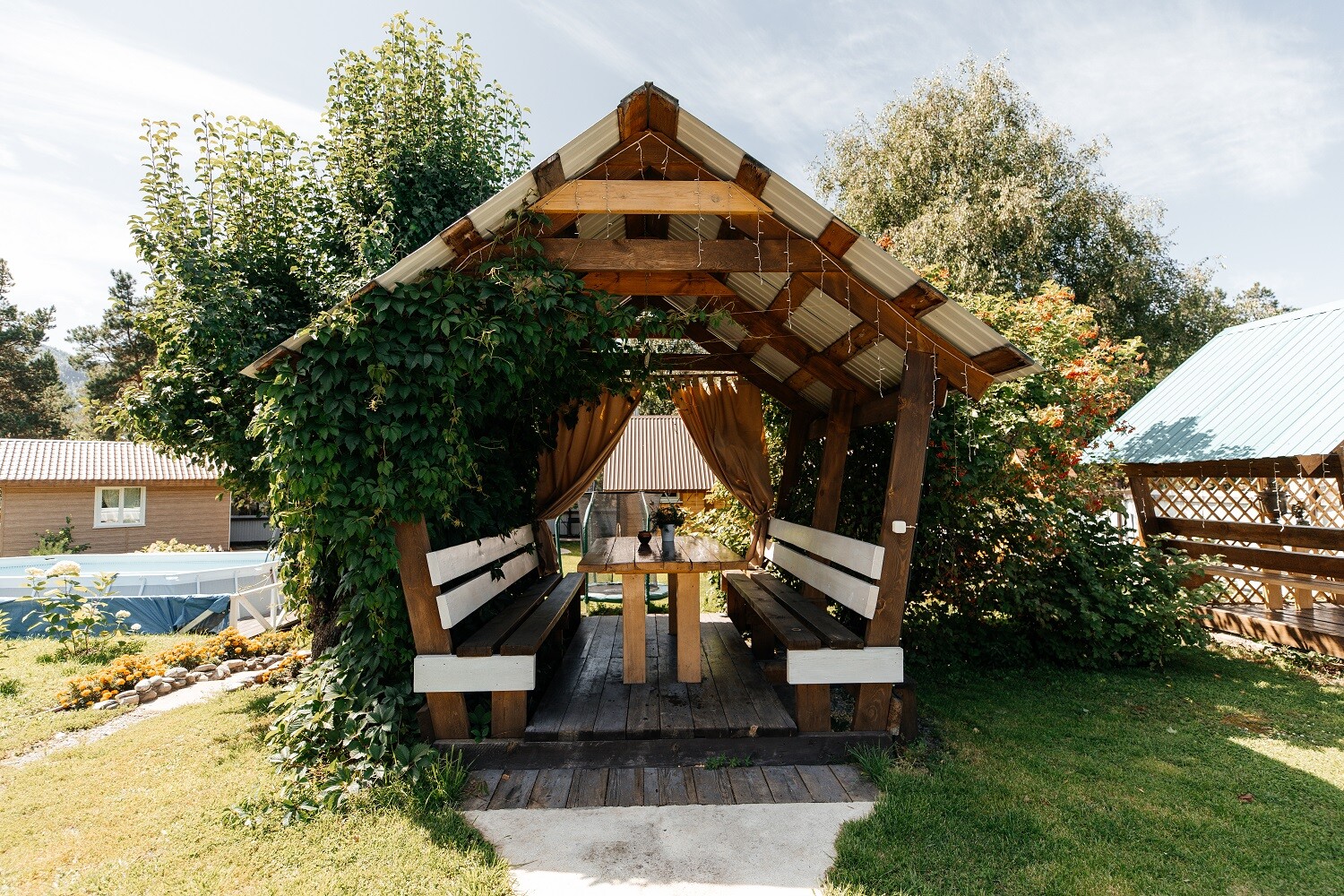 Представьте: утро начинается не с будильника, а с мерного шума бирюзовой реки и аромата хвои. На базе отдыха «Скай Алтай», мы создали все условия для тех, кто ценит тихий семейный отдых и личное пространство. К вашим услугам уютные номера и отдельные домики, оборудованные всем необходимым для комфортного отдыха. На территории базы имеются беседки для приятных посиделок в кругу близких, мангальные зоны, где вы сможете приготовить любимые блюда на огне. Для полного расслабления предлагаем посетить нашу баню на дровах с ледяной купелью, а также освежиться в бассейне и понежиться на лежаках под ласковым алтайским солнцем. Мы позаботились и о самых маленьких гостях, предусмотрев детскую площадку. Для безопасности вашего авто - бесплатная парковка внутри территории.