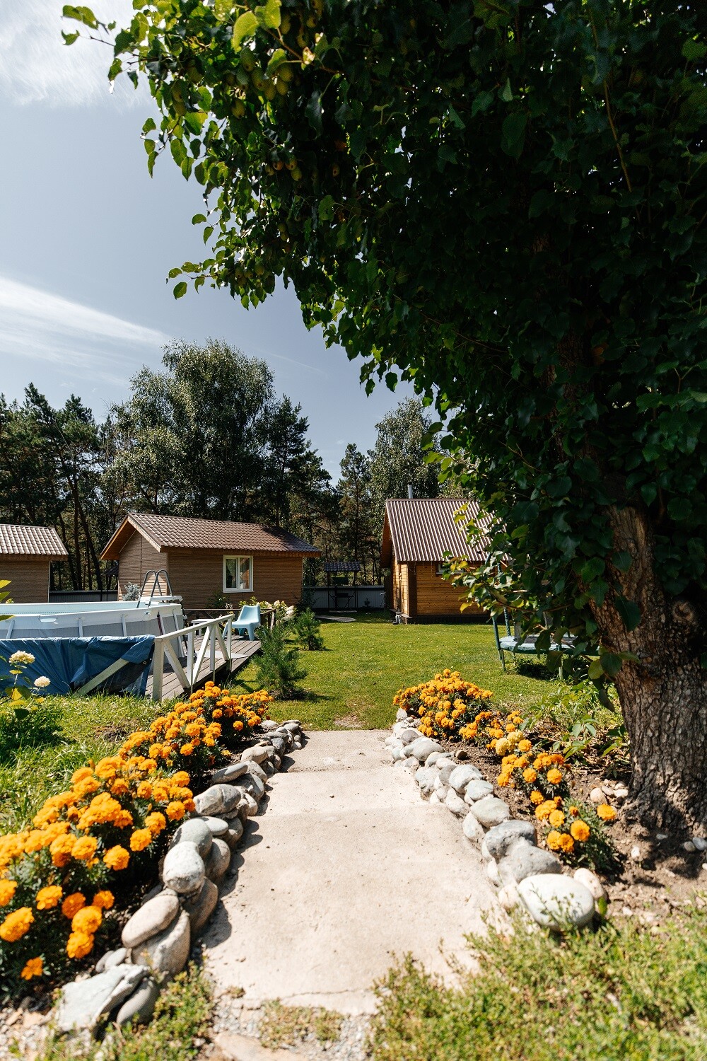 Рекомендую всем!!!! Тихо, уютно, чисто, вежливые хозяева. Есть детская площадка с песочницей, качелями и горками для маленьких постояльцев. Для более взрослых имеются взрослые качели - скамейки, бассейн с шезлонгами, баня ( очень чистая) с чайником чашками, с доп.полотенцами и с купелью, зона барбекю с мангалами( их несколько).Сервис европейского качества.
